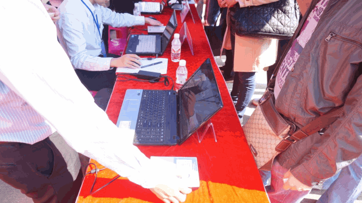 【电子签到】2000人的到场压力集中爆发,电子化签到大显身手,刷身份证即可签到,2秒一个,有条不紊,1个小时基本上签到完毕。