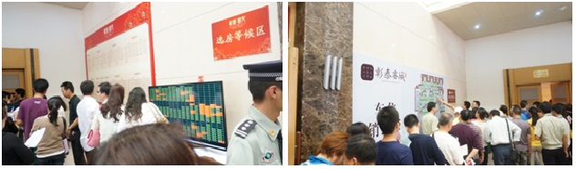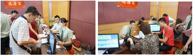 “选房区”——客户换抽签号之后进入“选房区”,“选房区”8台电脑一对一服务,销控表实时显示各个楼栋和房号的销售情况,好房子真是“手快有,手慢无”,许多客户经历惊险5秒,有位选到心仪房子的阿姨说“还好我之前已经做好了准备,进来马上选定,否则就几秒钟的时间,我选定的那套可能就被别人选走啦”!