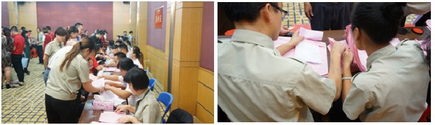 下午13点,签到正式开始,面对大量客户到场,金鹏电子化签到临危不乱,两个入口的“身份证签到点”准备就绪,客户刷身份证即可入场,3秒/人,秩序井然,不少客户惊叹“这么快就可以吗?”在得到工作人员肯定的回答之后满意入场。