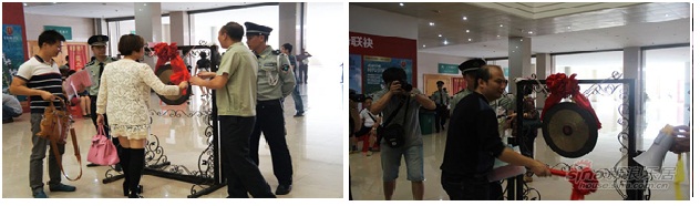 选到心仪房子的客户,激动的敲起“喜锣”,掩饰不了内心的激动。