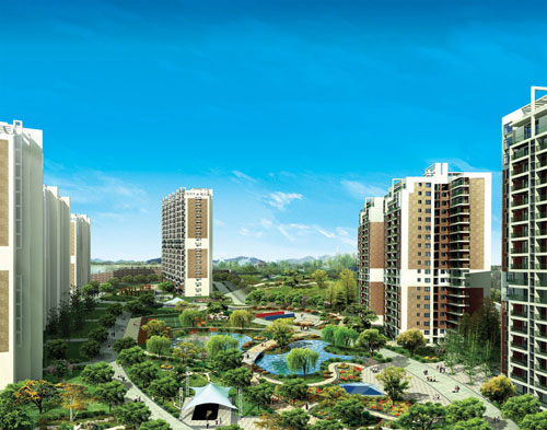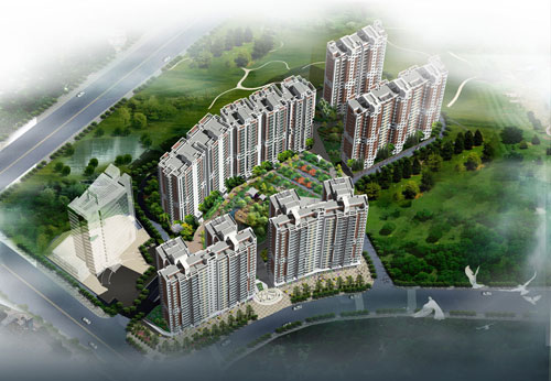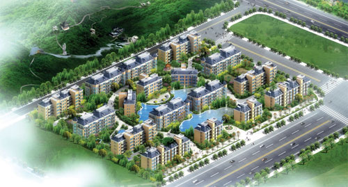 小区位于开福区新港镇鹅羊山村,总用地面积为421亩,分两期五年开发完成,一期按0.4容积率、二期按2.09容积率计算的建筑面积为370000平方米,其中开发总投资为10亿元,为减轻资金压力、适用市场的需求,项目拟分期分批滚动开发。一期工程于2009年9月开工,2009年12月主体封顶,2010年8月竣工,总用地面积约78亩,本期工程北为西南-东北向菱形地块,西北临新安路,西南面和东南面为规划道路,南向为鹅羊山公园,西南向距湘江约一公里。地块周边环境优美,景观资源丰富,地块容积率为0.4。总建筑面积为:17152㎡,其中地下室建筑面积约2892.18㎡,地上部分由一栋服务用房、配电间和10栋多层住宅组成,共40套住宅,地上建筑为14259.86㎡。建安成本约为:5308万元,总投资为:1.5亿元。