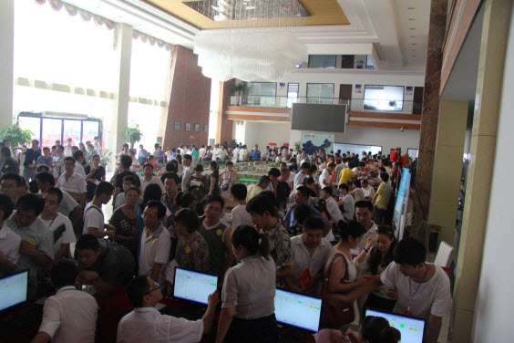 金鹏软件作为销售管理软件供应服务商,现场提供了全程的服务,由于金鹏软件的操作简单与高效作业,当天到场客户较多,采用了到场签约,分组摇号入场选房的规则,客户量达到1500批以上,抽号系统由金鹏软件免费提供。