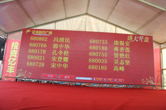 7月28日“黄金商贸区”亿丰时代广场盛大开盘,当天开放1100多套商铺,当天上午从9点正式开盘,到中午12点三个小时即热销50%近600套商铺,到下午五点结束,又成交110多套商铺,与菏泽市其它同类产品开盘仅售几十上百套相比,在当地市场不景气的情况下,可以说是亿丰时代广场极大的成功。